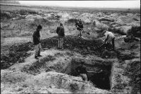 On a trip through Eastern Europe, some years ago, I visited Kaliningrad, where the worldwide biggest amber state holding company is located. Digging for amber is highly profitable and the owner of the spot, the Sate of Russia, wants to keep the profit itself. Nonetheless a lot of stealing and corruption is going on there, which is tolerated to some extension. Outside the fences of the company area villagers try to gather some small profit too, by digging for amber with their hands, which is not tolerated. I stayed with them for an 'average' working day.